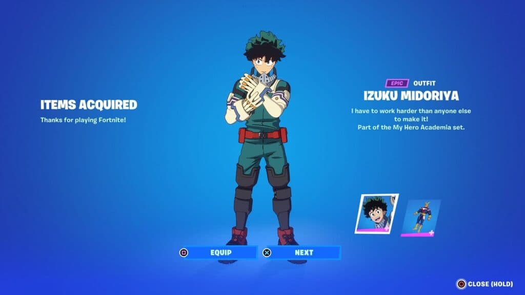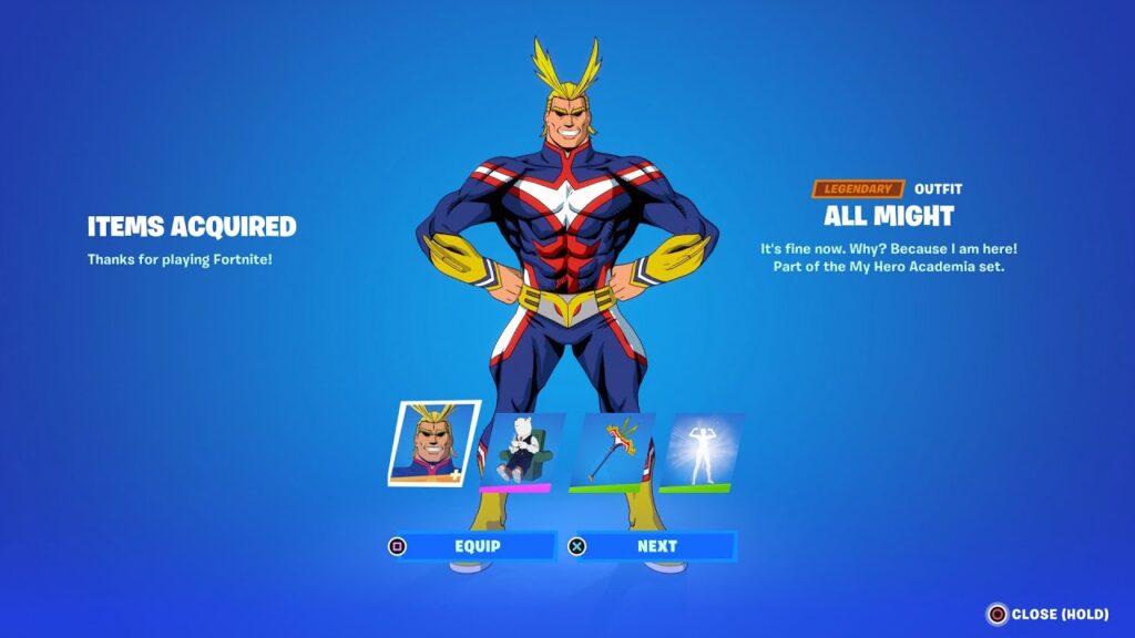 In fact, this was the skin many were hoping for when they called for a My Hero Academia x Fortnite collaboration. Dressed in his famous blue and red suit, All Might stands as easily one of the coolest skins in all of Fortnite and is also fourth in our list of the top 10 most used anime skins in the game.