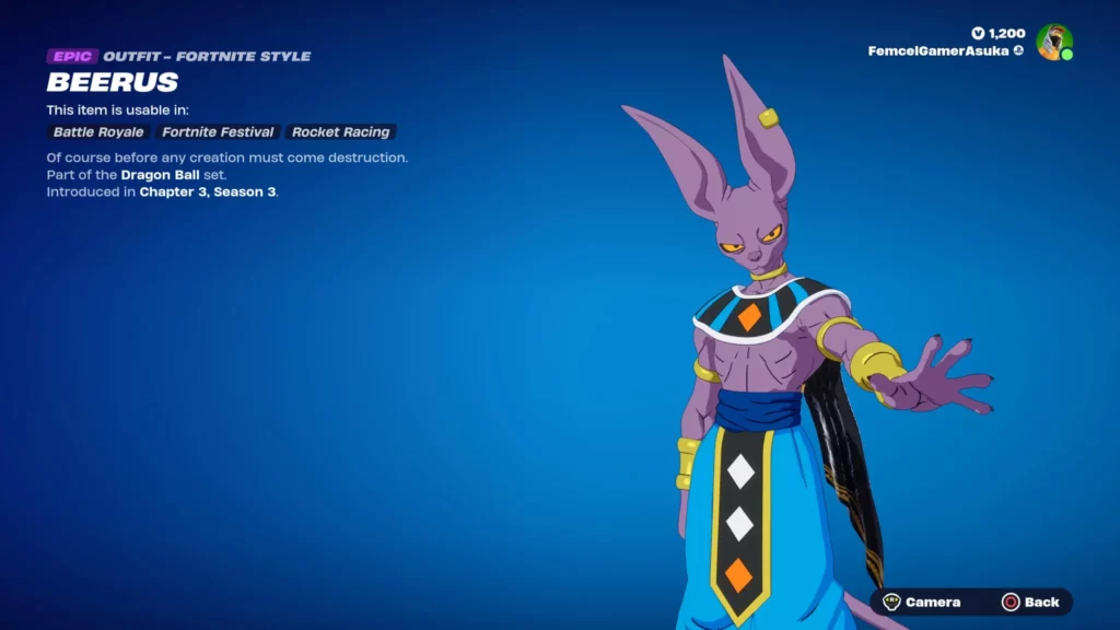 One of those skins is Beerus. The God of Destruction was one of the first skins to make it into the game, making him incredibly sought after by many. His slick (and not too extravagant) style made him quite popular with players, making him number nine on our list of the top 10 most used anime skins in Fortnite.