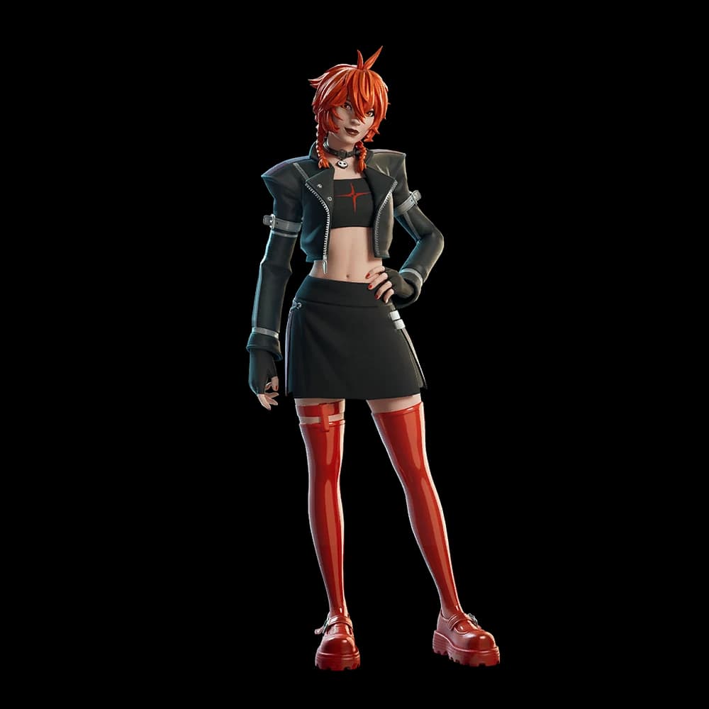 Fortnite's newest skin, Nix Scarlet, is a brand new skin in the game. The character is a woman with fiery red hair, a leather jacket and red socks that go up past her kneecaps.