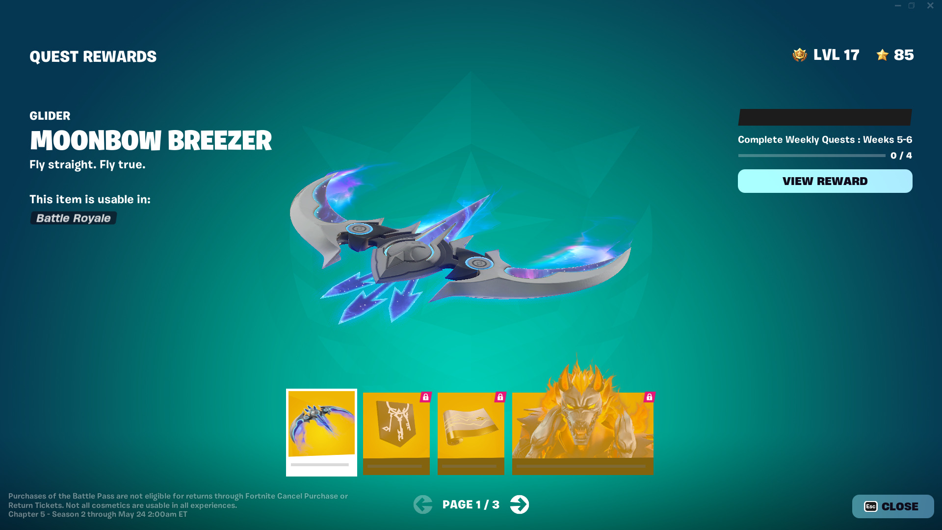 - Reward #1 – Moonbow Breezer Glider (Complete 4 Quests in Weeks 5/6)
