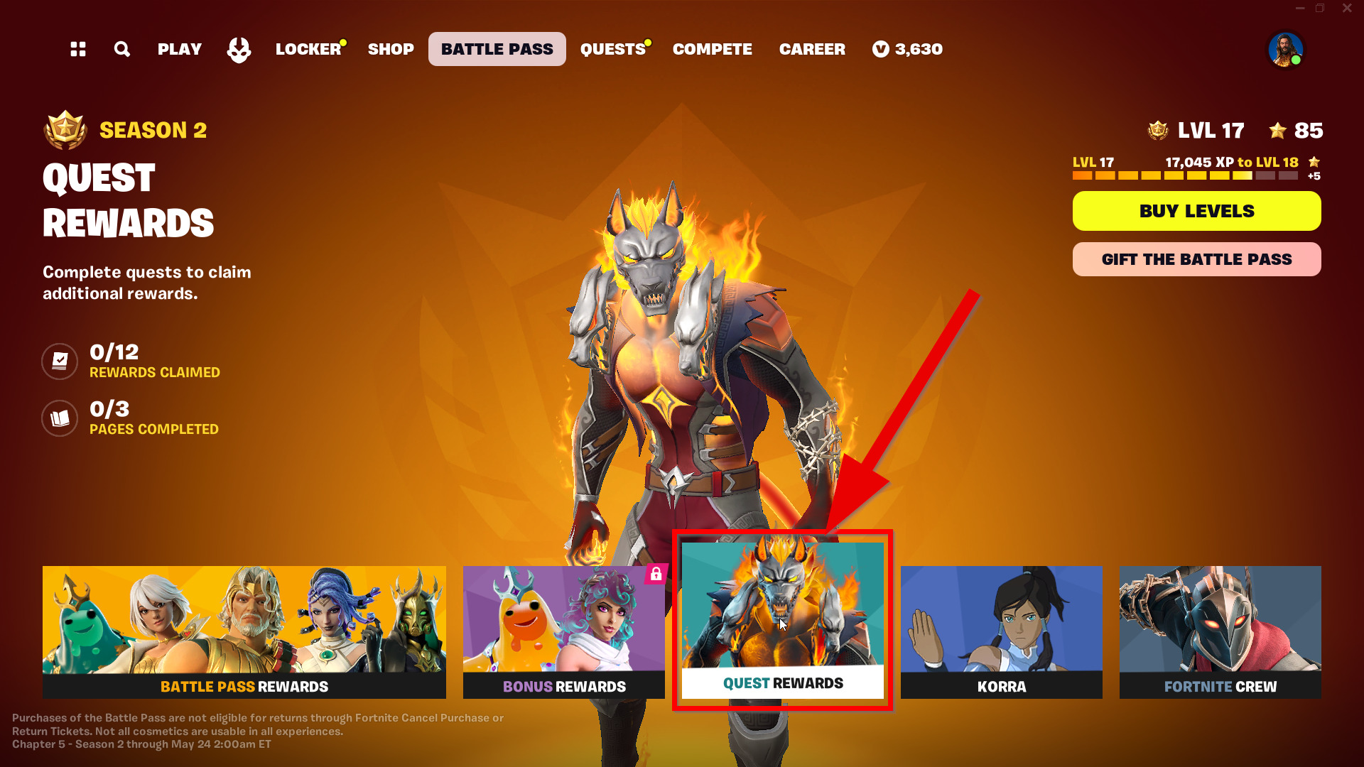 To unlock the Quest Rewards in Fortnite, complete the Weekly Quests under the “Quests” tab. In particular, the first page of Quest Rewards requires you to finish a certain number of Quests on Weeks 5 and 6.