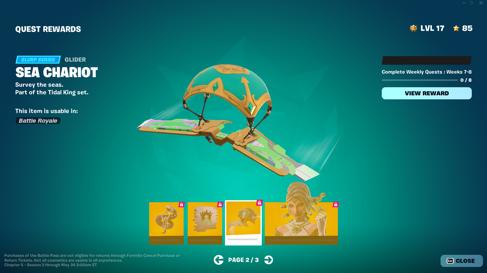- Reward #3 – Sea Chariot Glider (Complete 8 Quests in Weeks 7/8)