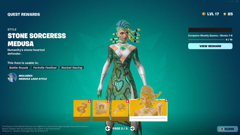 - Reward #4 – Stone Sorceress Medusa (Complete 10 Quests in Weeks 7/8)