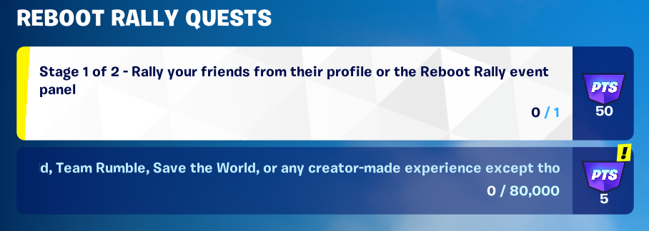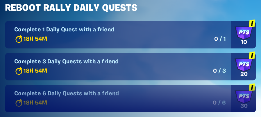 Here is a look at all of the current Fortnite Reboot Rally Quests: