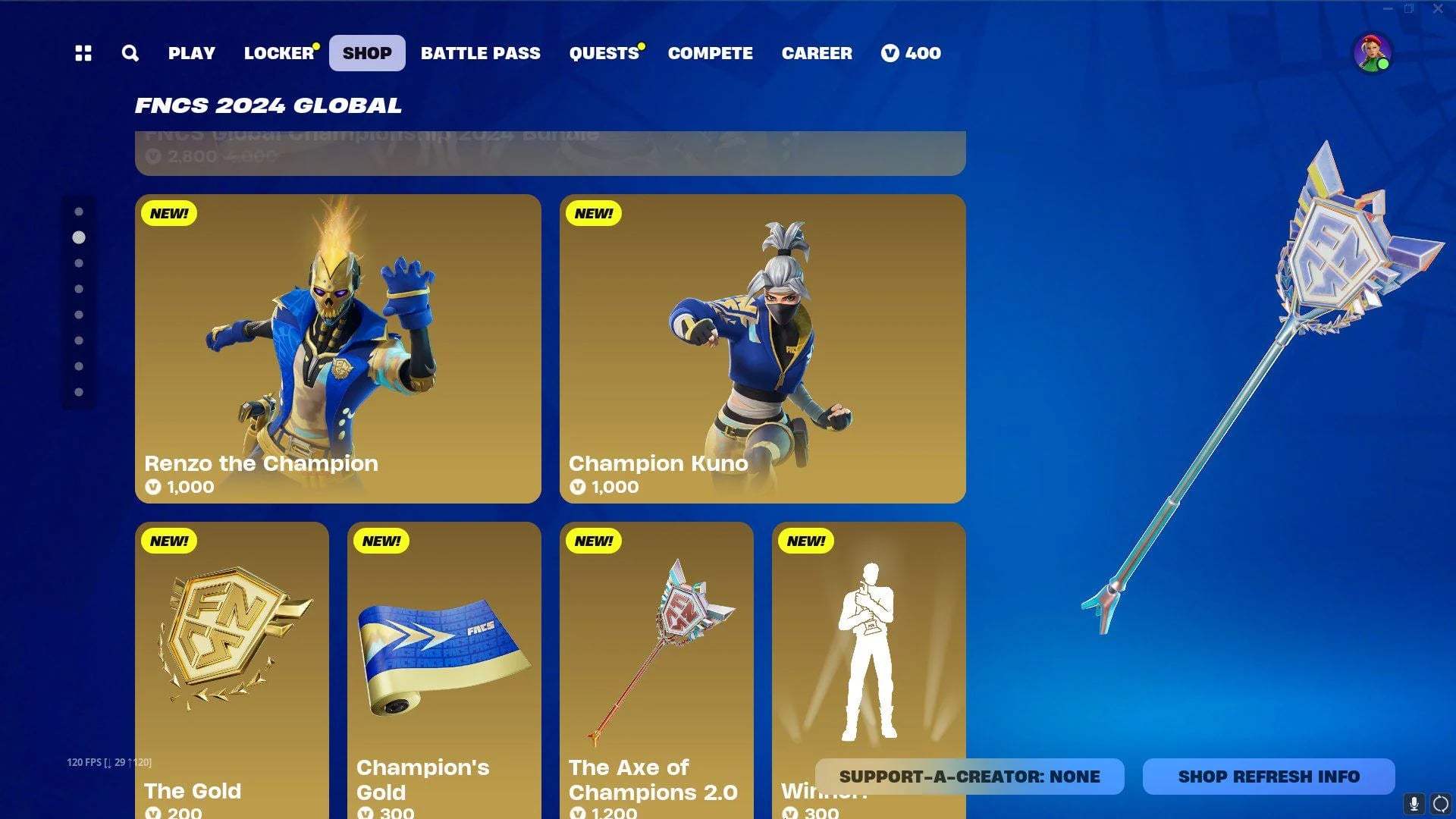 One caveat to mention is that Epic Games handed out codes for the Axe of Champions 1.0 to attendees at the FNCS Pro-Am this past May. Many of these codes became available only following the event through giveaways or second-hand markets.
