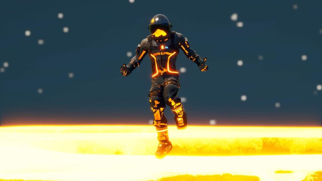 A favorite skin amongst many Fortnite gamers is the Dark Voyager. This skin showcased some sort of astronaut but with a sleek design. The skin consisted of a black space suit, with glowing orange lines pulsating across it.