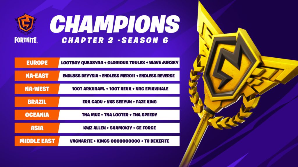 Very few Fortnite players hold the title of being two-time FNCS Champions. Even fewer players have won back-to-back FNCS tournaments. The trio of Sebastian “TNA Looter,” “TNA Muz,” and Nick “TNA Speedy” can boast of being back-to-back two-time FNCS Champions. They won the Season 5 FNCS then brought home the Season 6 Championship.