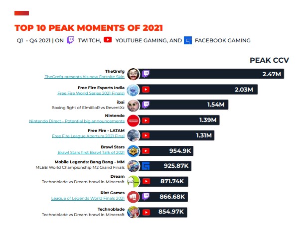 - Streamers continue to drive the conversation: Streamers on Twitch and YouTube continue to drive incredibly high amounts of viewership around their games of choice. The Dream vs Technoblade match proves that even titles like Minecraft, old as they are, have high viewership thanks to the personalities in those titles. Costreaming, as Ibai did for the boxing match, is also proving to be a trend that will stick around.