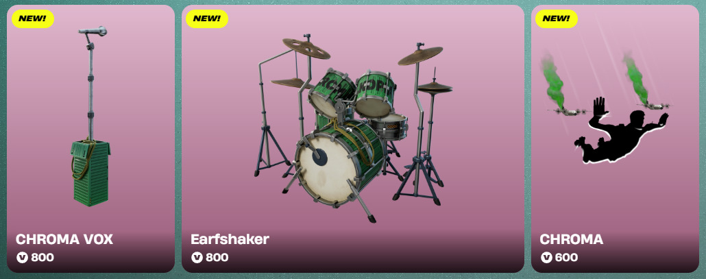- Chromakopian Outfit with three alternate styles and a mask option – 1,500 V-Bucks