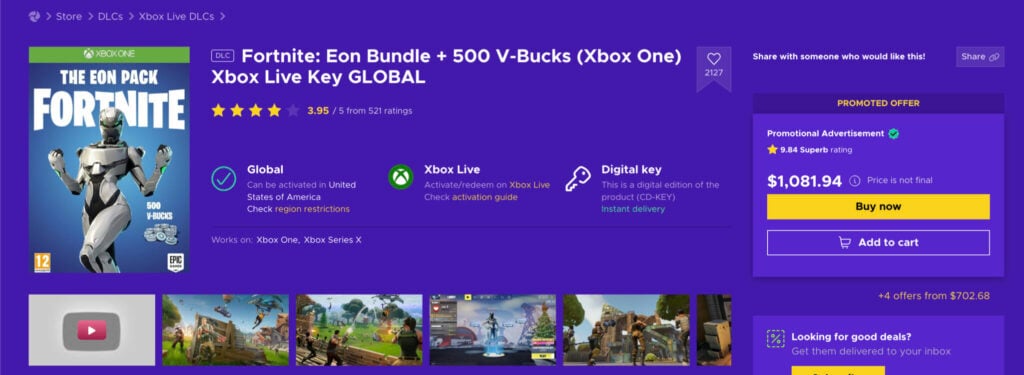 It’s simple. The Eon skin was released as a bundle with the Xbox One S. Players who wanted to acquire the unique skin would have had to purchase an Xbox One S at the time, which cost $249.99 USD.