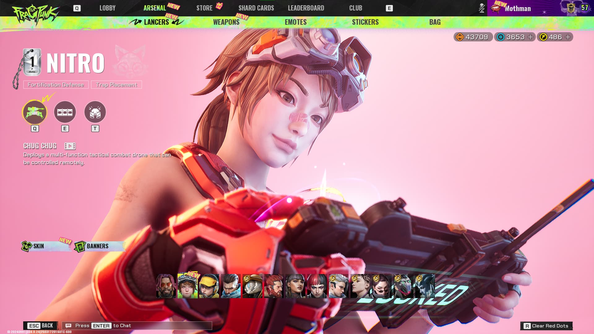 - Chug Chug: Deploys a multi-function tactical combat drone that can be controlled remotely.