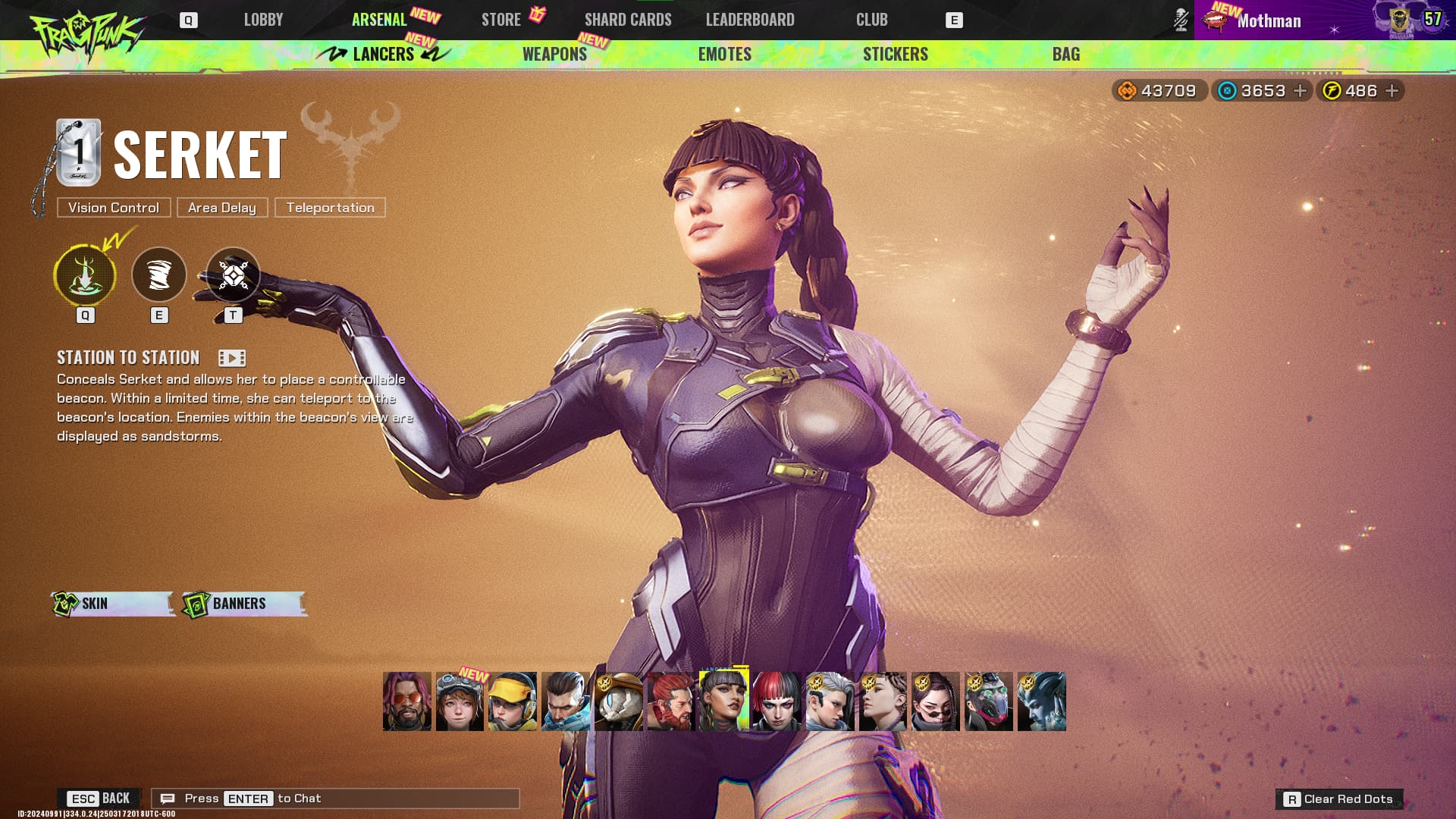 - Station to Station: Conceals Serket and allows her to place a controllable beacon. Within a limited time, she can teleport to the beacon’s location. Enemies within the beacon’s view are displayed as sandstorms.