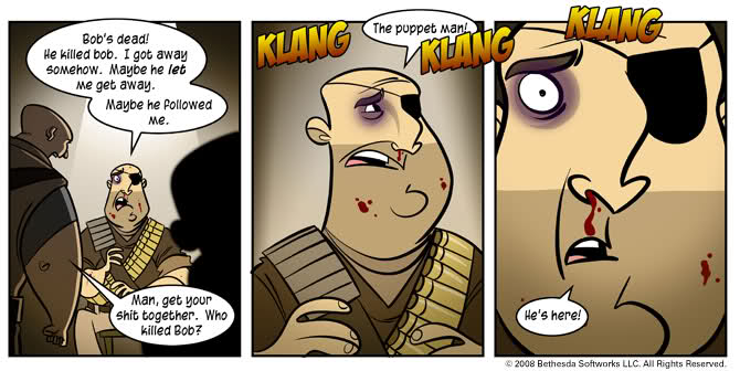 These puppets end up helping the Vault dweller go crazy, with one puppet of Vault Boy being especially encouraging of some homicidal and intrusive thoughts. Eventually, prompted by the insidious voice of his puppet friend, Vault 77’s dweller leaves the vault.