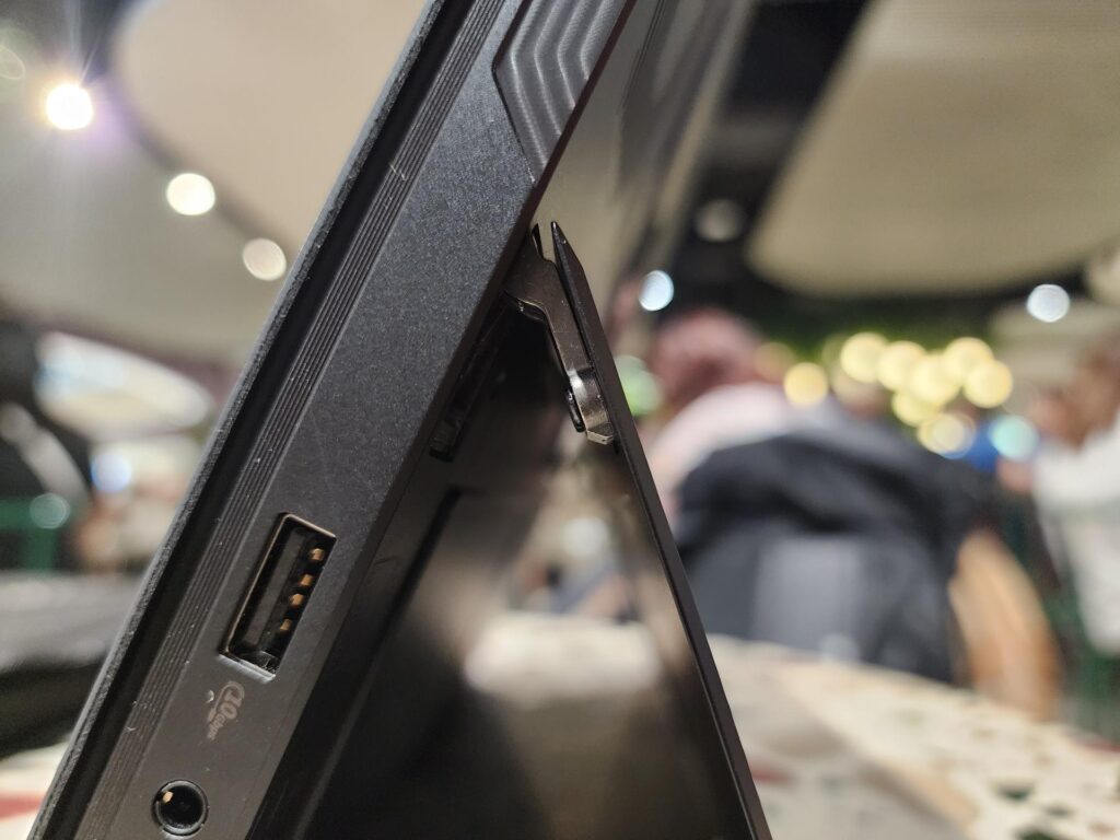 The screen half has a nice and sturdy kickflip stand that comfortably supports the device’s hefty weight.