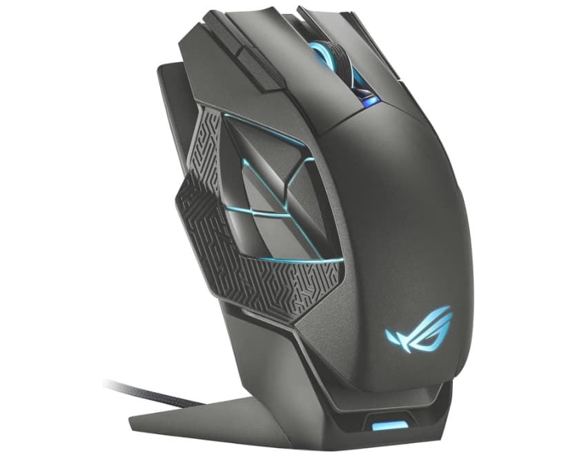 The ASUS ROG Spatha X is ASUS's sharp answer to the basilisk and is one of the coolest-looking mice in our collection here. The Spatha X comes complete with its own charging stand if you'd prefer that over the cable, making it a display piece alongside your PC.