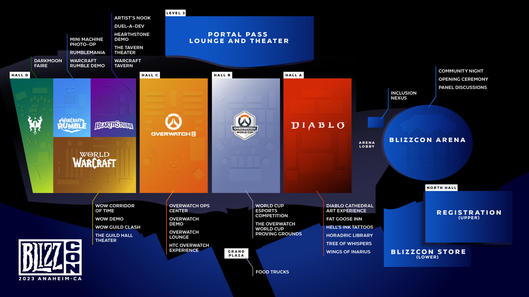In-person attendees of BlizzCon 2023 will be able to check out a plethora of activities on the floor. These activities will take place in the World of Warcraft, Diablo 4, Hearthstone, Overwatch 2, Overwatch World Cup 2023, and Warcraft Rumble halls.