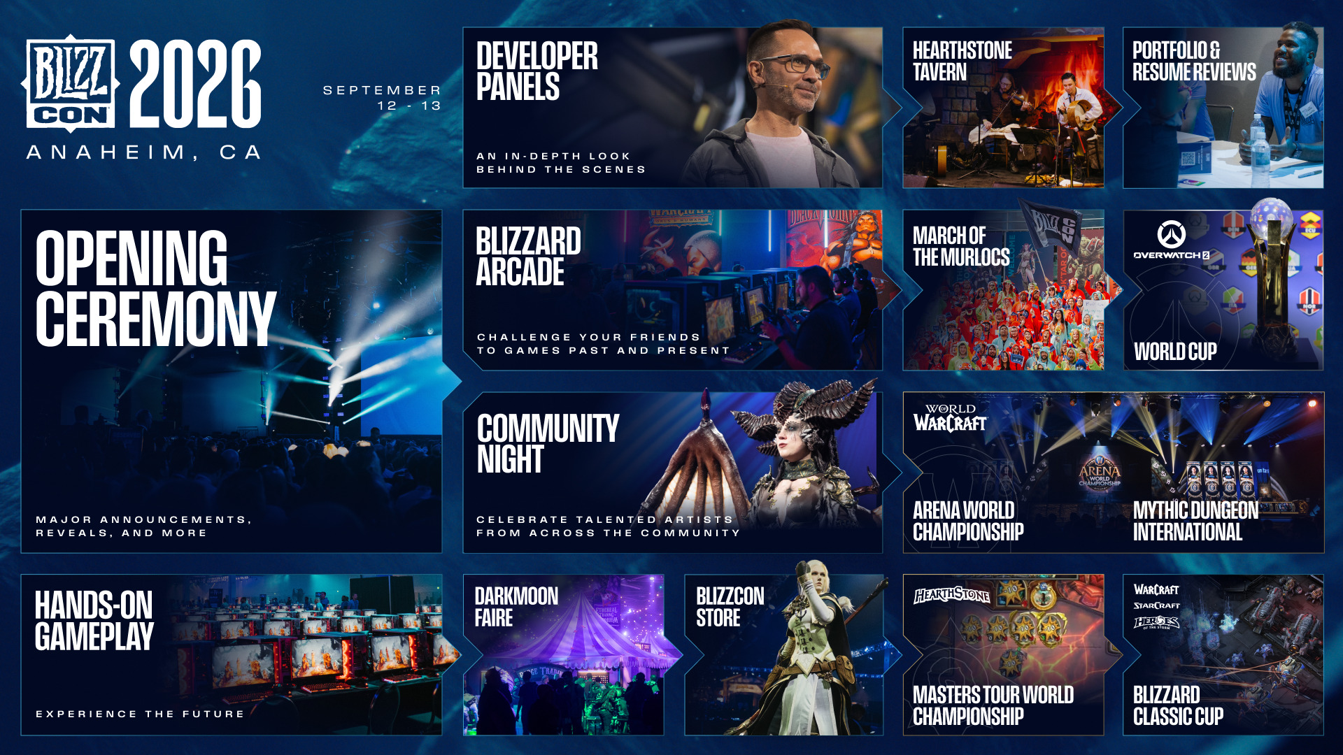 BlizzCon 2026 will happen between Sept. 12 and 13. Attendees will get to witness an opening ceremony with major announcements and reveals, challenge others in a special arcade area, sit awhile and listen in on developer panels, and support the top players in Hearthstone, World of Warcraft, and Overwatch 2. Heroes of the Storm and StarCraft will also get the spotlight thanks to the Blizzard Classic Cup!