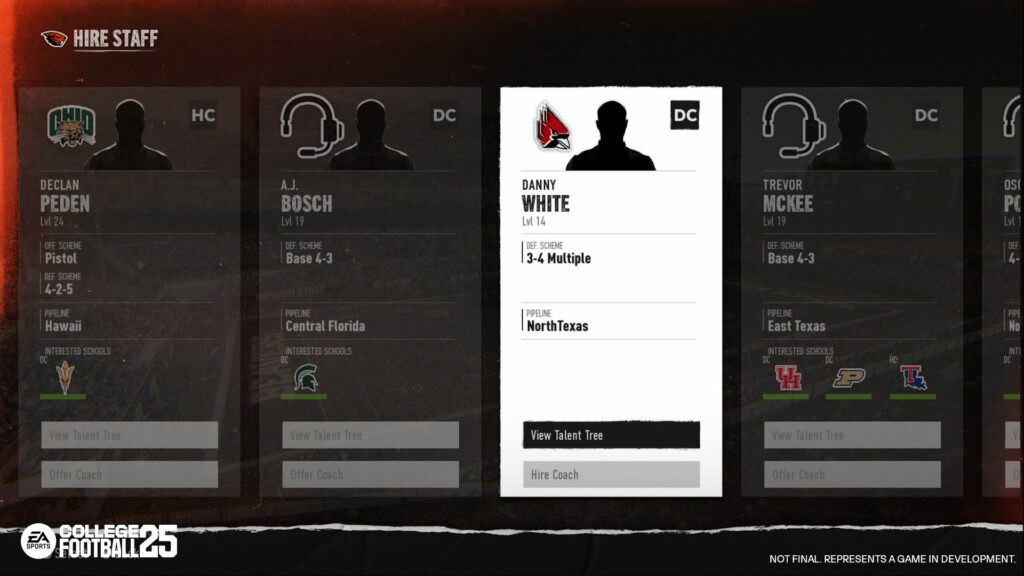You’ll have to not only find available coaches to fill out your staff, but they will also need to be good fits for your school based on different criteria like Scheme, Pipeline, or Coach Prestige. This also applies to your coach should you choose to look for greener pastures elsewhere.