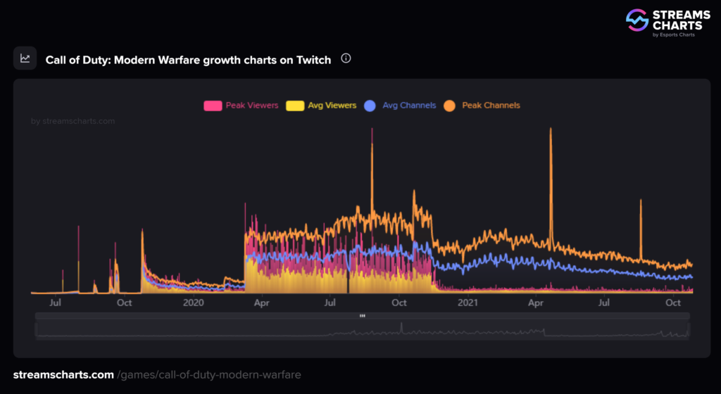 Since then, however, the game has risen steadily. If you look at the charts for Fortnite and Warzone you’ll notice a similar trend of consistent viewership across large swaths of time.