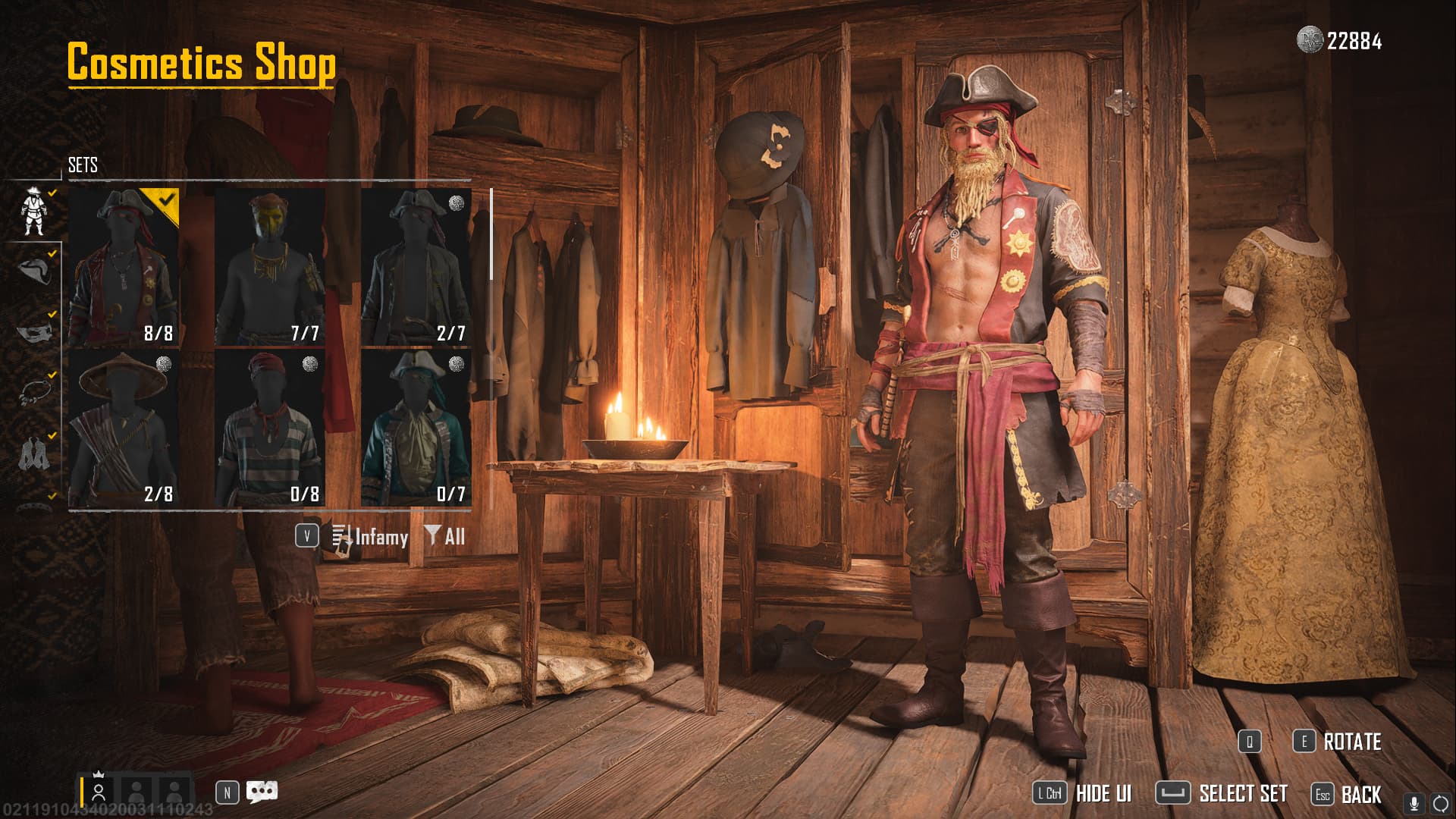 - Look through the list of cosmetics to equip what you already own or buy something new for your pirate