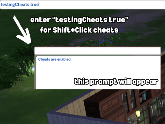 To enable cheats in The Sims 4, press Ctrl+Shift+C. A white box will appear on the top-left of your screen. This is the place where you type in all the cheat codes!