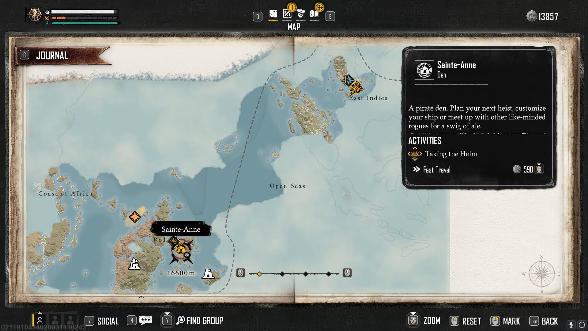 Nevertheless, you have to make the journey. Start from Sainte-Anne and set a marker right above the “E” of “East Indies” at the top right corner of the map. Set sail and avoid combat at all costs. Make the trip a bit longer if you have to by steering clear of others.