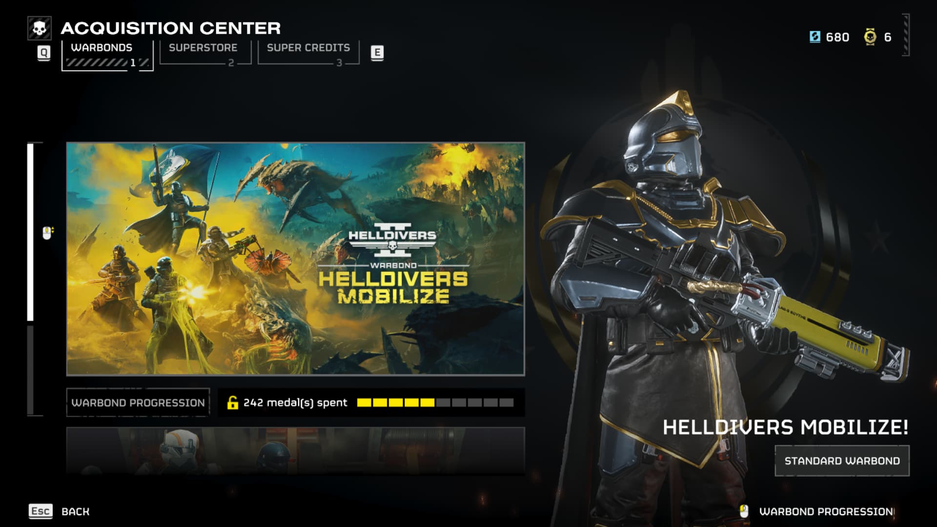 The Warbonds are like the Helldivers 2 version of a Battle Pass. There’s a free path and a premium one you have pay for. Just access the Warbonds section, find a Booster you have enough medals for, and unlock it.