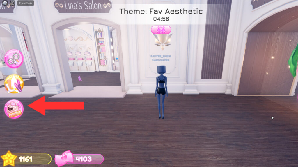 Step 1: Open Dress to Impress and locate the icon in the bottom left corner of your screen. The icon shows an image of a handbag and a coupon that reads “CODES”.