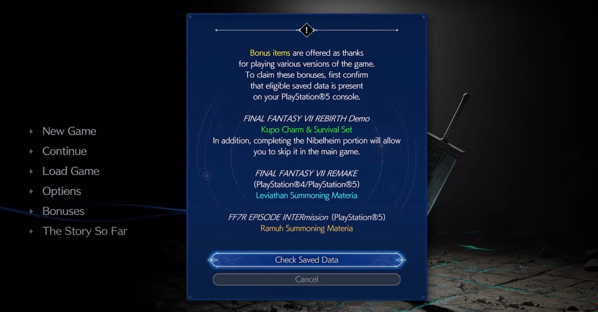 Step One: Have the game check for your FF7 Rebirth demo save file
