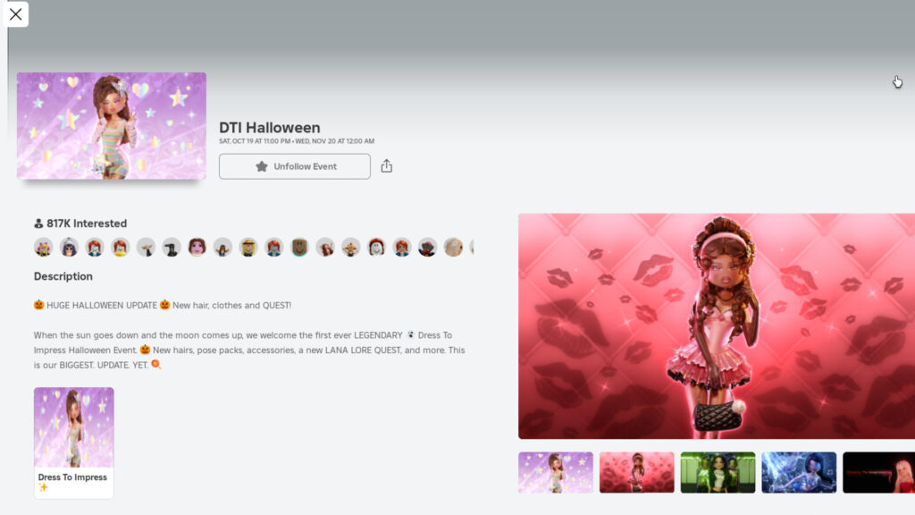 The spooky era is just around the corner! The Dress to Impress Halloween event arrives soon, and more than 800,000 players are following the event, as seen on Roblox’s DTI Halloween event page. This marks the biggest DTI event yet and some speculate that the immense traffic might shake Roblox!