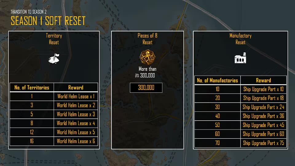 - Manufactory Reset – Ship Upgrade Parts are given based on the number of manufactories you end Season 1 with.