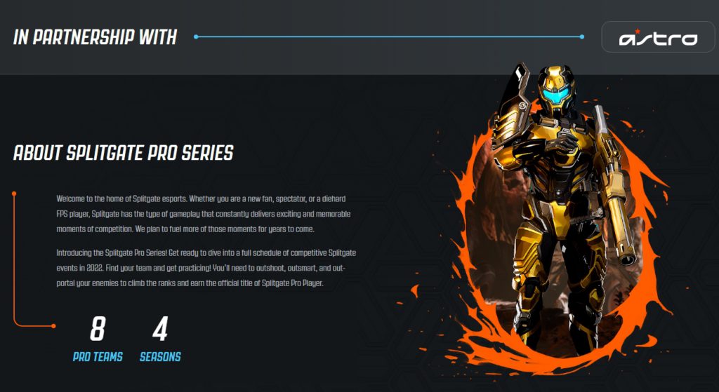 The Splitgate Pro Series in 2022 is divided into four separate seasons. Each season will feature 8 pro teams – the starting ten are based on the results of Splitgate competition last year. They’ll play match days over six weeks, ending in a $60,000 final match seeded by the weekly results.