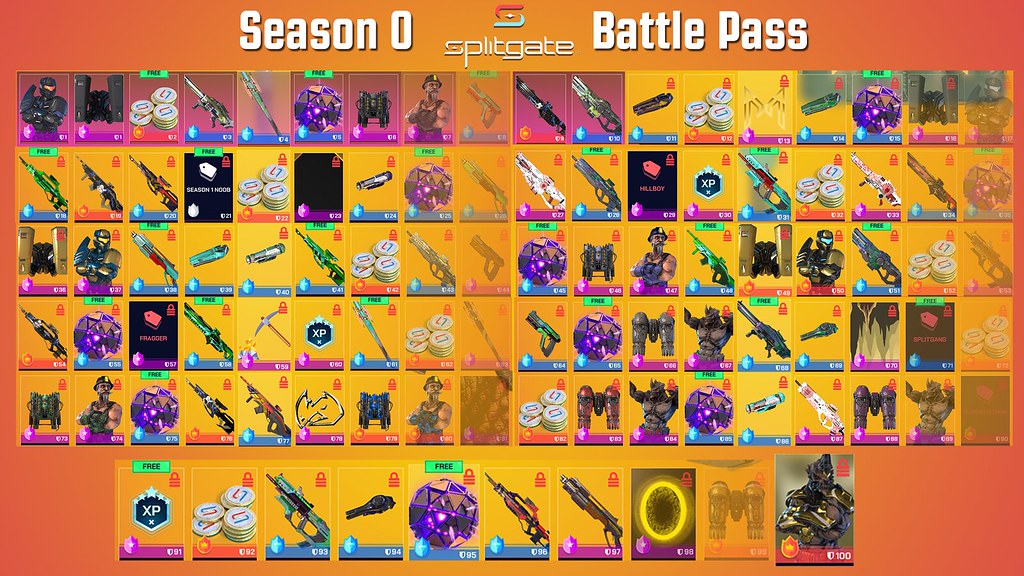 Splitgate’s first ever Battle Pass includes the usual cosmetic goodies: weapon and armor skins, as well as new emotes. The Battle Pass also features season-long challenges similar in nature to those in other titles like Apex Legends.