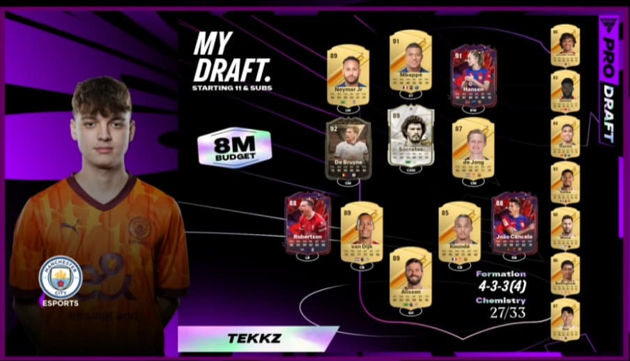 Tekkz has grown up in the spotlight of esports. From his successful social media presence, to his countless victories in the FIFA and now FC Pro esports scene the world has watched him develop step by step over his career.