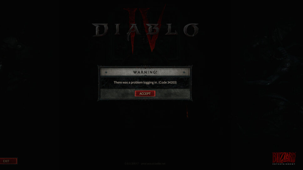 If you’re getting the Diablo IV error code 34203 then you may be running into an authentication error. These types of errors are common upon servers first going live, including for other Blizzard titles such as Overwatch 2. This is a server-side error having to do with logins bottlenecking the system and, in general, making it harder for folks to log in.