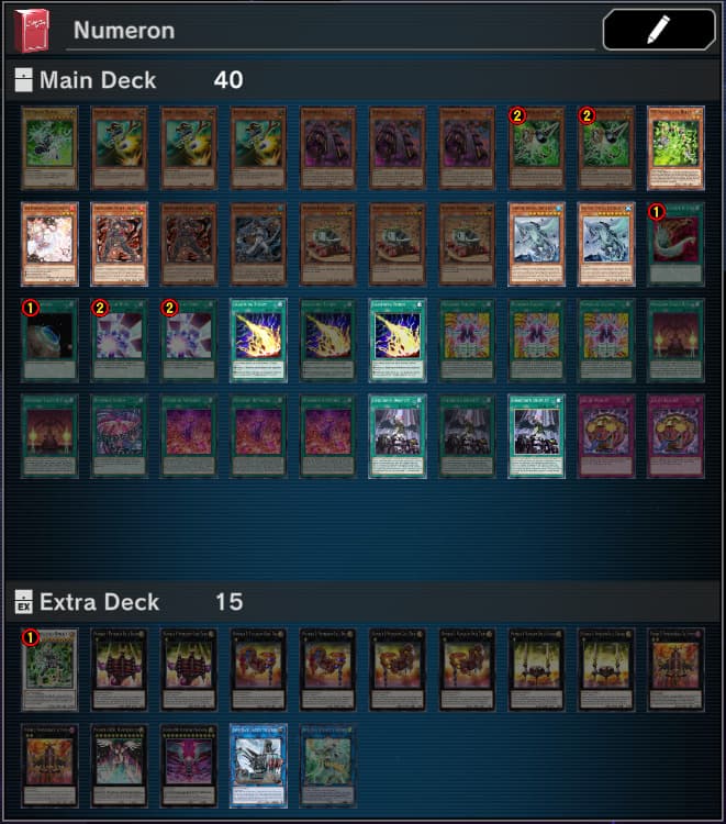The premise of the deck is to use Numeron calling to summon all 4 of the basic Xyz monsters to then build into the higher ranked Xyzs. Then the Numeron Network field spell lets you activate the archetypes effects without detaching materials.