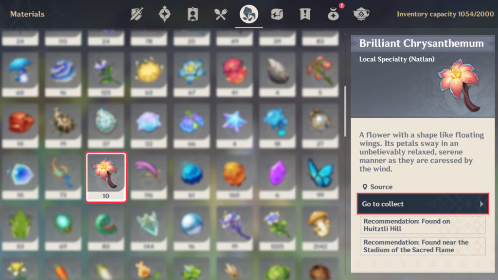 If you have at least one Brilliant Chrysanthemum in your inventory, you can click “Go to Collect” to make tracking easier.