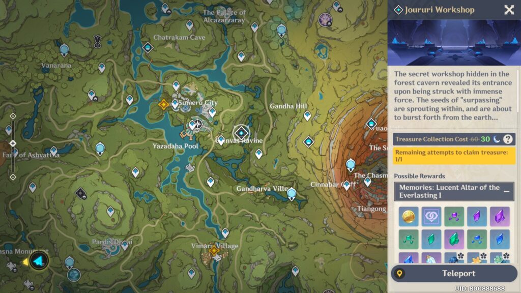 Brilliant Chrysanthemum can be acquired in the northwest corner of Natlan. You can pick up a maximum of 71 at a time. Each one respawns two real-life days after being harvested, which means collecting all 168 you need will take more than two full harvests, which would take four days. Alternatively, you can visit other players’ worlds to make this affair quicker.