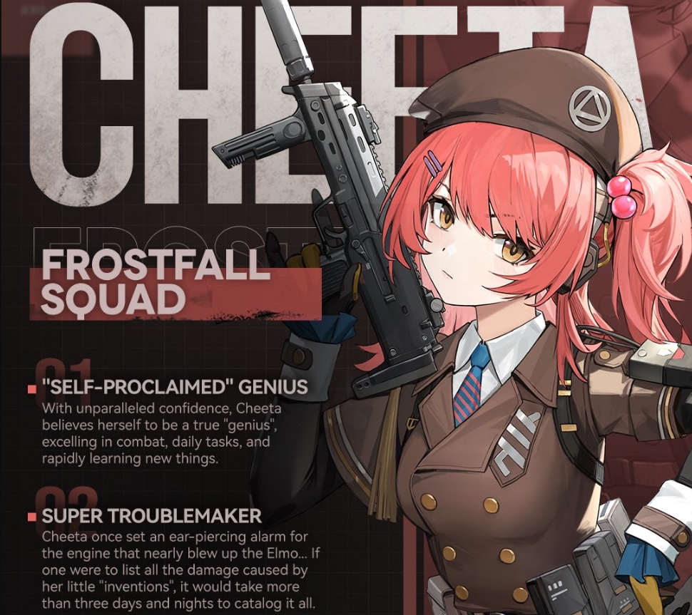 - The Disaster-Bringing Lucky Star: Despite Cheeta’s constant desire to replace her body, she rarely sustains more than 20% damage, even during perilous missions that nearly wipe out her team.