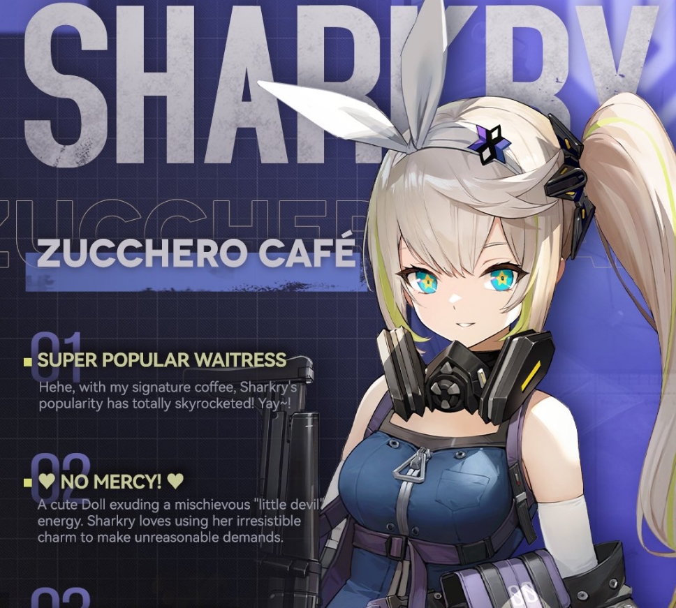 - ♥︎No Mercy!♥︎: A cute Doll exuding a mischievous “little devil energy. Sharkry loves using her irresistible charm to make unreasonable demands.