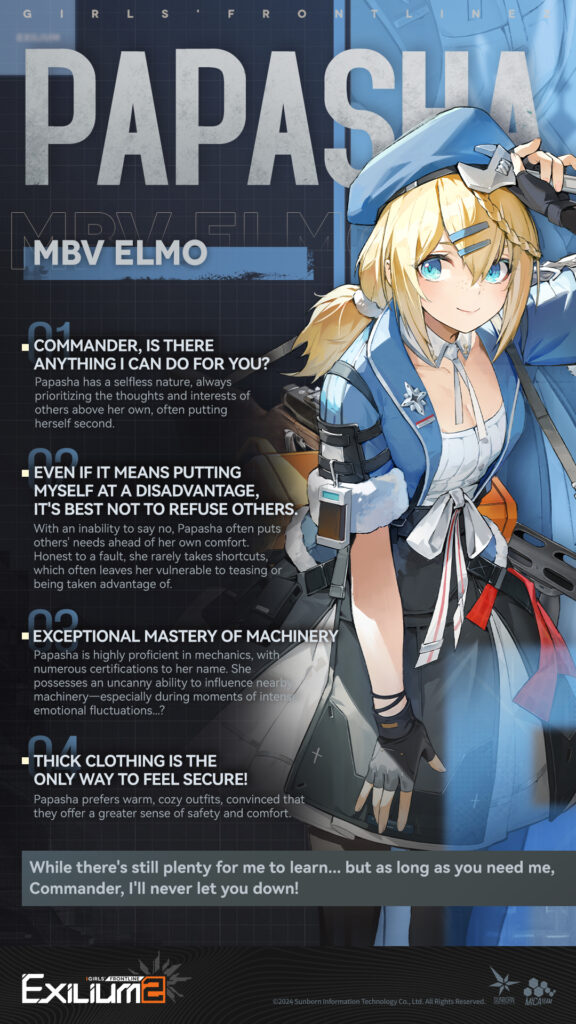 - Commander, is there anything I can do for you: Papasha has a selfless nature, always prioritizing the thoughts and interests of others above her own, often putting herself second.