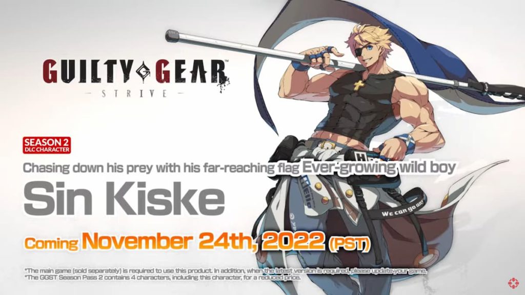 Sin Kiske drops into Guilty Gear Strive on November 24th. To grab him, make sure you purchase the GGST Season Pass 2 which will eventually contain four characters, including Bridget, Sin, and two others to be revealed later.