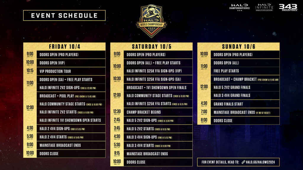 Here is a list of the entire weekend’s schedule for the Halo World Champions 2024: