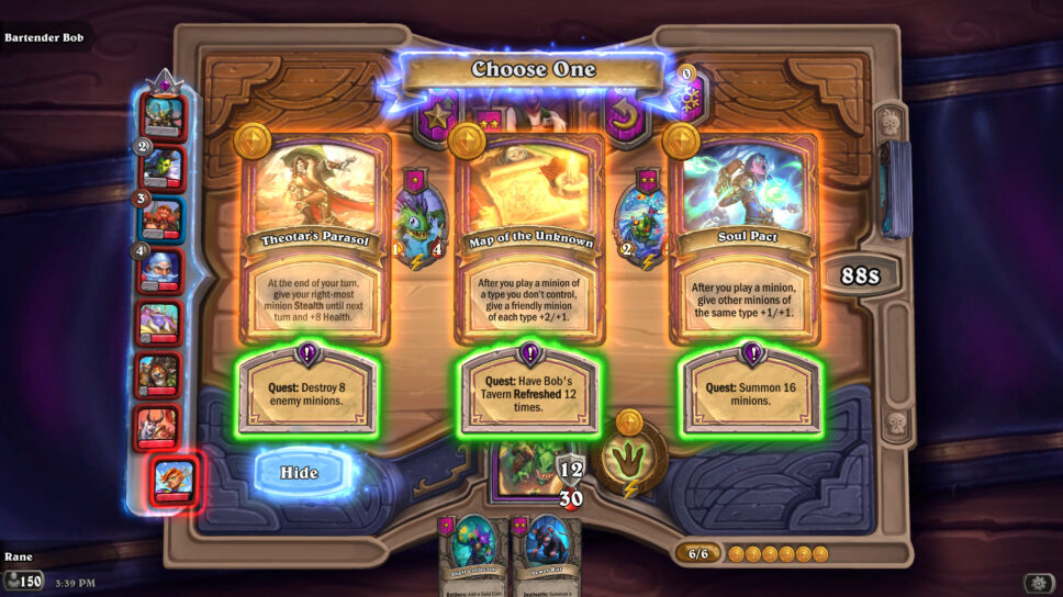 Before we start throwing tips, let’s go over what Battlegrounds Quests are. Blizzard introduced this new game mechanic on Battlegrounds Season 2 on August 30, 2022, and while they rotated out, now they are back for a limited time. Battlegrounds Quests appear to every player in the lobby on turn 4 (six Gold). Each quest has a reward paired, and there is where the power relies on.
