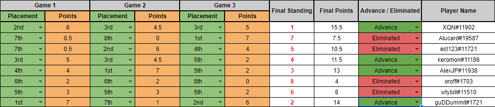 These 48 players fought in a two-stage qualifier with the highest stakes. Each lobby played three games, and the top 4 players with the most points after three games in each group advanced to the second stage. In that second stage, players were once again sorted into groups, with the top 4 of each, advancing to the Final Event.