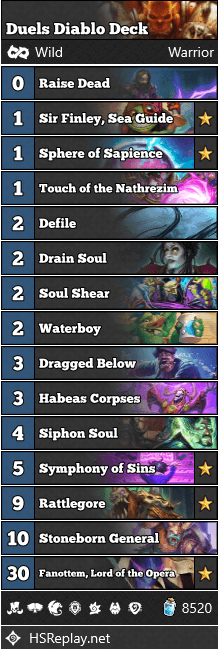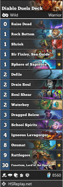In a surprise patch, Hearthstone banned Waterboy -among other cards- from Duels given the unwanted interactions with Diablo. This makes the following two decks illegal. We are looking for more 12-win decks for Diablo and we will update the article as soon as we get them.
