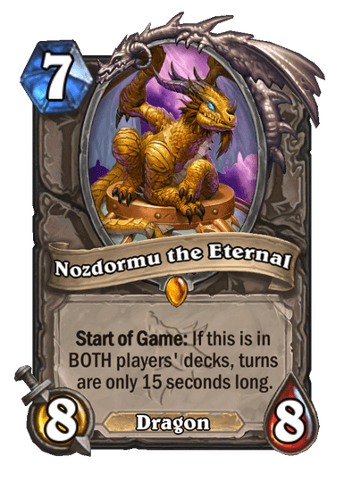 The following Hearthstone decks are some examples of what can work in Nozdormu at the End of Time Tavern Brawl. The first two are Wild decks but don’t worry if you don’t have the cards, there are cheap standard archetypes for you too.