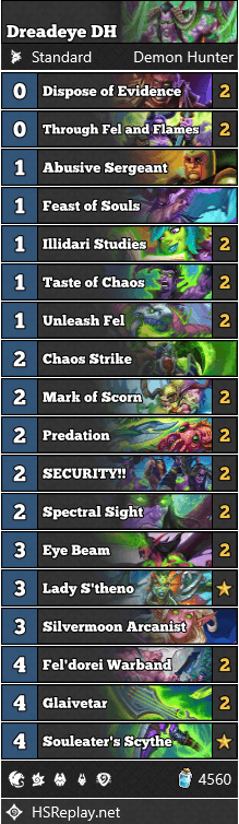During the past few days, Dreadeye dominated the Hearthstone Legend meta using mainly two decks. The first one used was the aggressive Spell Demon Hunter. This lists abuses of Stheno's in combination with the new Audiopocalypse card Throuogh Fel and Flames and Abusibe Seargent.