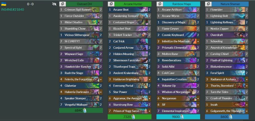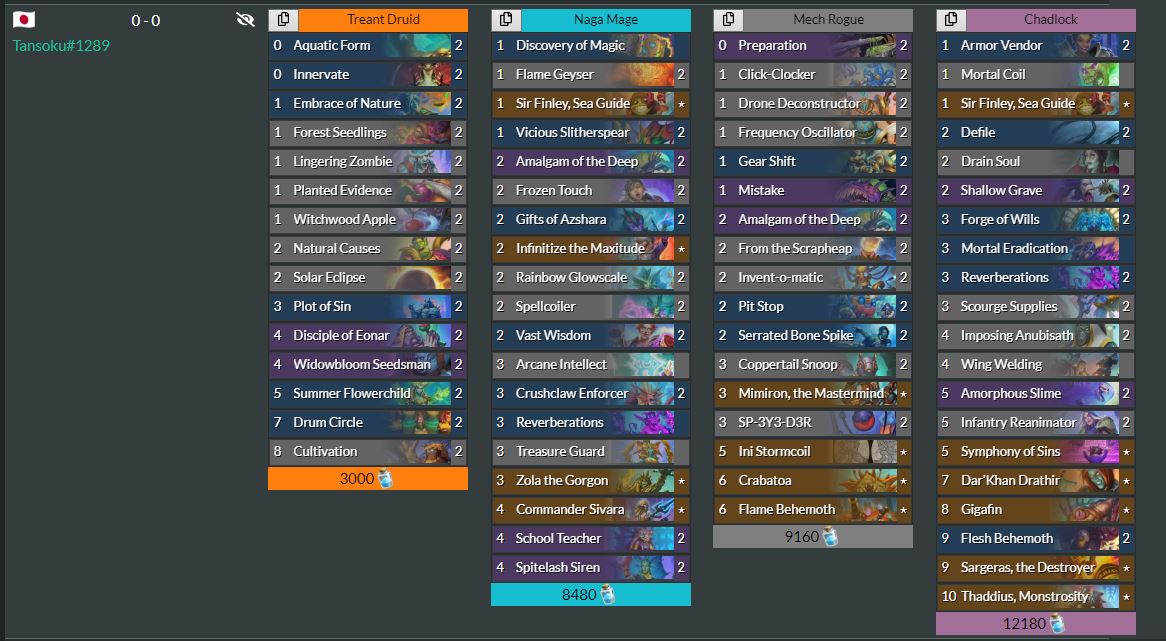 Let’s analyze the Hearthstone Summer Championship decks and line-ups group by group. Tansoku stands out with his Naga Mage and Chadlock inclusions. You can check every player’s line-up in the following gallery: