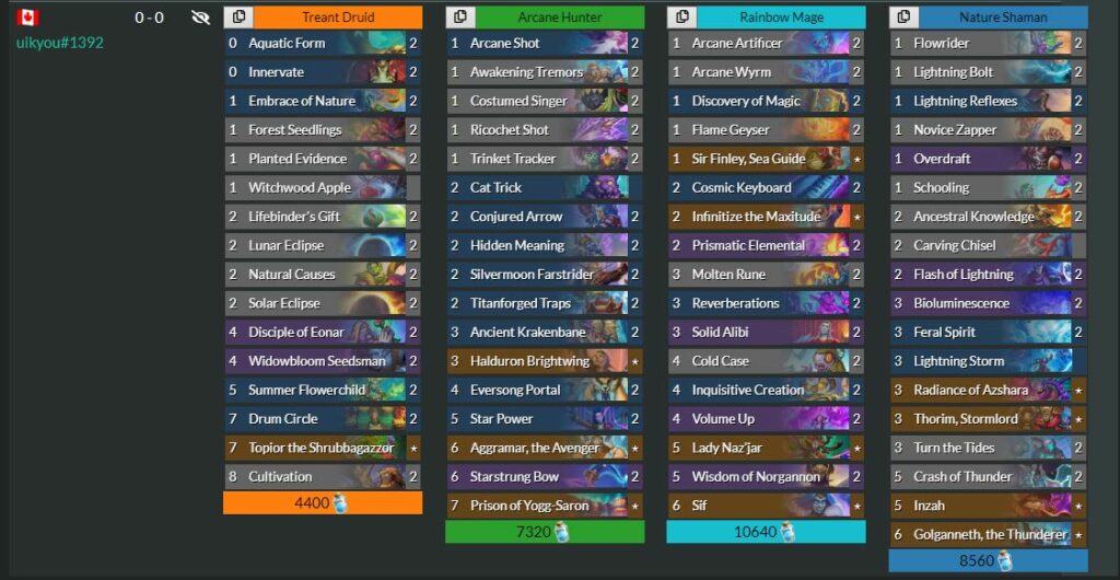 Rainbow Mage and Nature Shaman are the most popular decks in this group, something similar to what happens in Hearthstone ladder at top Legend.